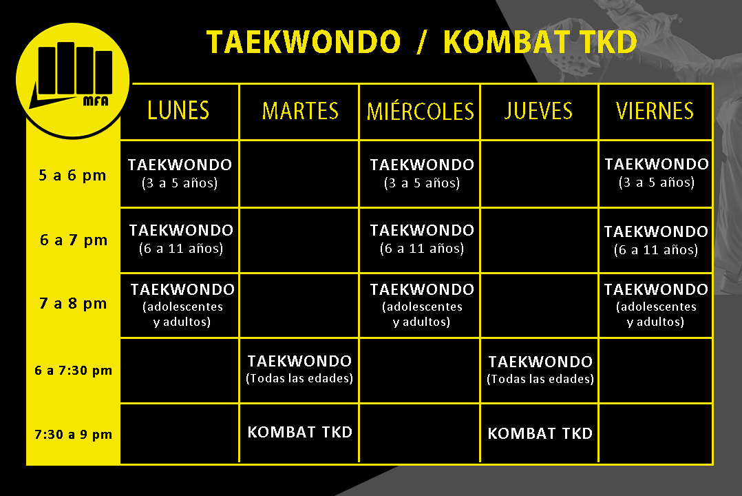 Es un arte marcial coreano que hoy en día, día se ha convertido además en un deporte, que se sustenta en un estilo de combate donde se utilizan los pies y las manos, lo que lo hace competitivo por su rapidez y precisión. El Taekwondo enseña no solo las habilidades físicas de combate, es una disciplina que muestra las formas de realzar nuestro espíritu y nuestra vida a través del entrenamiento de nuestra mente y cuerpo.